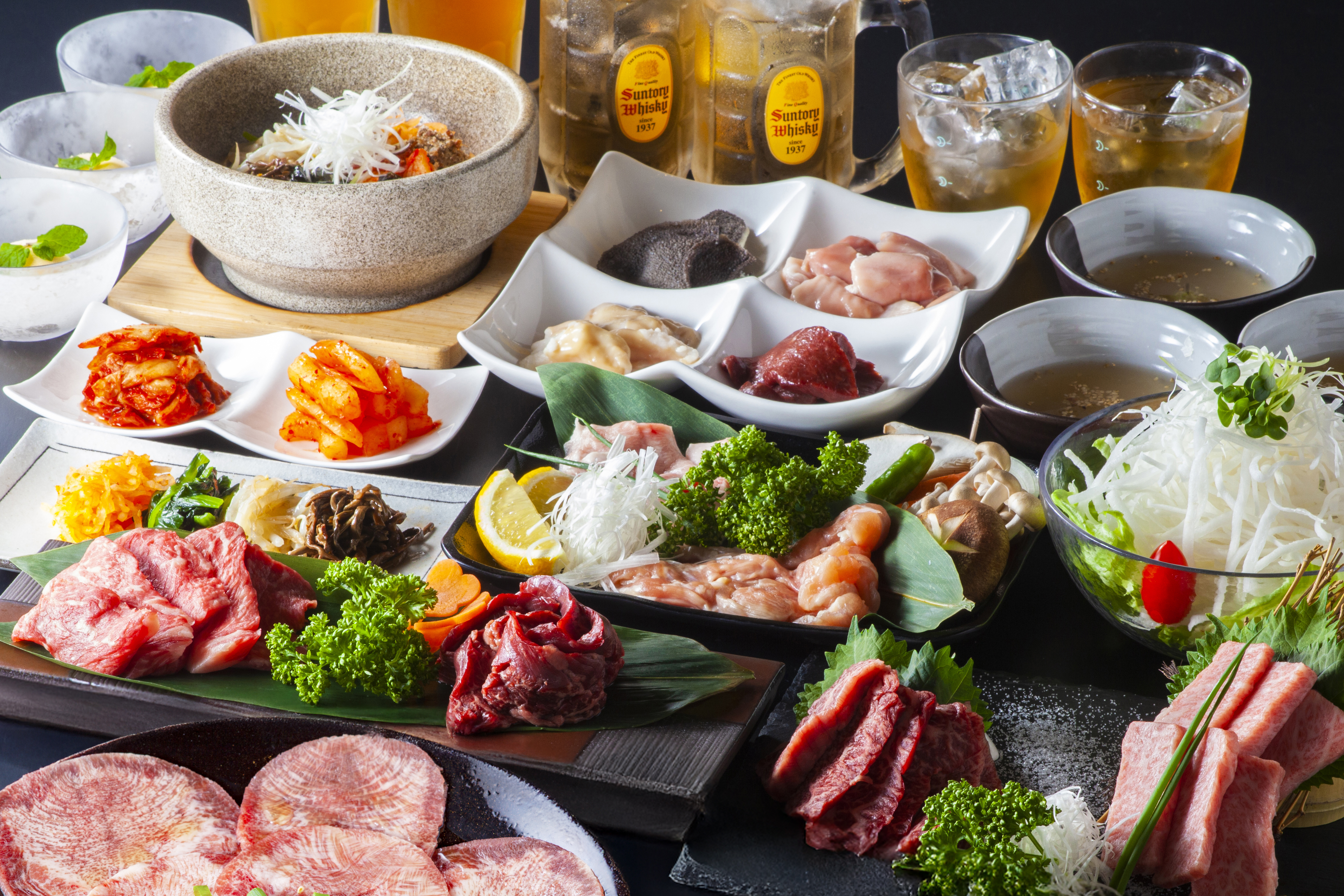 前菜 / 厚切り牛タン / 特選肉寿司 / 特選和牛盛合せ / 青森県産牛盛合せ / 厳選ホルモン / 石焼ビビンバ / ミニ冷麺 / サラダ / デザート